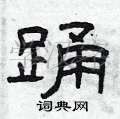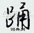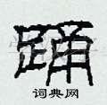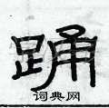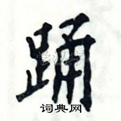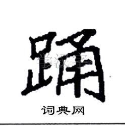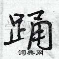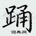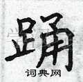 对于“踊”这个字,它的结构比较复杂,需要注意上下两部分的比例和关系。在写的时候,上部应该略微收紧,下部则应该舒展开来,使整个字显得平衡而美观。此外,“踊”字的笔画也要流畅自然,特别是转折处要注意细节。