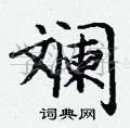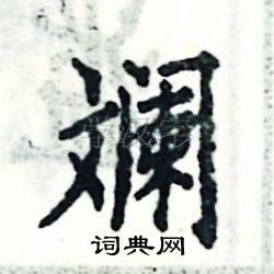 3. 字体大小与笔画粗细:可以适当增加整体字体的圆润感和立体感。可以通过改变笔画粗细和调整字体大小来实现这一点。例如,三点水旁的点可以写得稍微圆润一些,右边的“阑”字的竖画可以稍微加粗一些,以增加整体的稳定性。