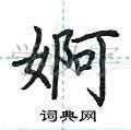 2. 笔画顺序:按照正确的笔画顺序书写,不可跳笔或漏笔。“婀”的笔画顺序为:横折钩、竖折钩、横折弯钩(撇的位置适当调整)。按照顺序一笔一划地写,有助于字的结构更加美观。