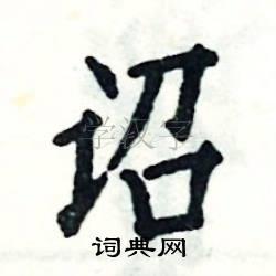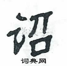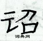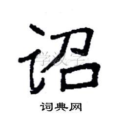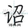 2. **笔画顺序**:按照正确的笔画顺序书写。先写左边的“言”字旁,再写右边的“召”字。每一笔都要注意力度和节奏,做到稳健有力。