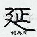 1. 延字的竖弯钩要稍微弯曲,不要写得太直。