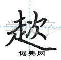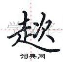 2. 字形结构:趑字属于左右结构的汉字,左右两边要分布均匀,不要出现重心不稳的情况。左半边的走字要注意竖笔与右半边的对齐关系,保持垂直方向对齐,使整体字形稳定。右半边的多字要在左侧对齐的基础上做适当调整,让整体看起来更加和谐美观。同时也要注意上下部分之间的比例和平衡关系。在写字时可以采用对比的方法观察自己的字与他人的字有何不同并加以改进。另外注意在写字过程中多观察、多思考字形结构特点以及如何通过笔画的粗细长短变化来优化字形结构等技巧问题。同时要注重细节处理如笔画的连接处要流畅自然等。