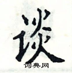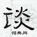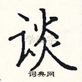 1. 基本笔画:首先,要确保每一个笔画都写得准确、有力。例如,“谈”字的左半部分是一个“言”字旁,注意其点的位置和形状,以及与下面部分的连接。右半部分是“炎”,每一个横画和竖钩都要写得平直且均匀。竖钩部分要有力度,表现出稳定感。