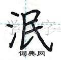 1. 找准字形:首先需要找准字形结构,整体要求稳定。三点水的部分尽量把第二点写得最长,将右侧结构略微倾斜放置,这样可以形成一定的平衡感。在整体字形上要尽可能保持对称。