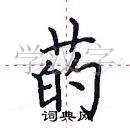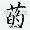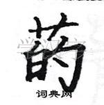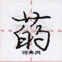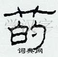 2. 写出上部分的“艹”字头,注意横画之间要匀称,稍稍倾斜,展现出草书的韵味。