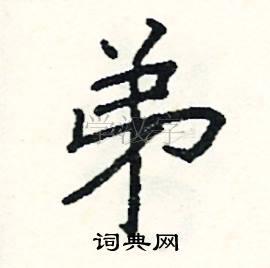2. 字体结构:注意“弟”字的整体结构。它应该看起来均衡且和谐。特别是要注意“弟”字的最后一笔竖折钩,它是字的关键支撑点之一,要与左边的笔画保持平衡。在书写时可以适当加粗这个部分以增强稳定性。