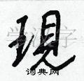 2. 接着写右边的见字,见字的撇画要短一些,与左边的部分协调。
