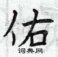 3. 观察与模仿:观察优秀书法作品中的“佑”字,注意其笔画顺序、结构安排和整体风格,然后进行模仿。可以通过学习书法教程、字帖等资源进行练习。