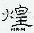 2. 笔画:煌字的笔画较为复杂,要注意细节。笔画要流畅自然,不要过于生硬。特别是“火”字旁的火焰形状和“皇”字的上部结构,需要细致入微地描绘。