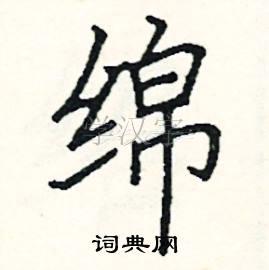 2. 笔画:其次,要注意笔画的书写。 "绵"字的笔画较多,要清晰地写出每一个笔画,尤其是要注意细节部分,如"纟"的转折处和线条的流畅度。