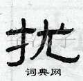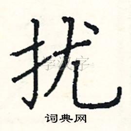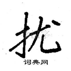 2. 结构和比例:扰字是一个左右结构的字,左边的小撇和右边的部分要有合适的比例和配合。右半部分要写得相对紧凑,重心平稳,上下对齐。此外,还要注意到每个笔画的起笔和收笔位置,确保整体结构美观。
