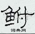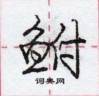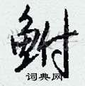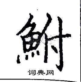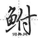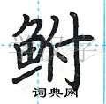 1. 笔画要流畅:写“鲋”字时,要注意笔画的连贯性和流畅性,尤其是左右结构的两个部分,要有力且均衡。上部分的鱼头线条应柔和,突出其圆润的形态。下部分左侧两点及竖勾应该结合得恰到好处,右边三撇的力度与倾斜度要保持平衡,整体上体现出鱼跃水面的动态美。
