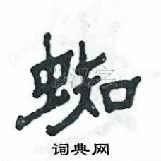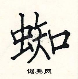 4. 在写“蛛”字旁的“足”时,要使其看起来平稳而有力。特别是足部的横折钩和竖折钩的部分,要有明显的转折和力度。
