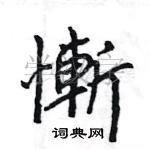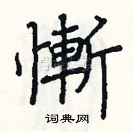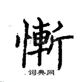 对于“慚”字,尤其需要注意左部的“心”和右部的“斩”的比例和配合。左部的“心”应该写得稍微大一些,占据较多的空间;右部的“斩”应该写得稍微小一些,以配合左部。同时,注意笔画的粗细和流畅度,使整个字形看起来舒适、美观。
