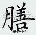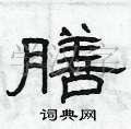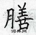 对于“膳”字,特别需要注意上下结构中的“肉”字旁和“善”字的比例和位置。在书写时,可以将“肉”字旁写得更细长一些,以突出“善”字的主体地位。同时,注意掌握好整体字形,使字体端正、匀称、美观。