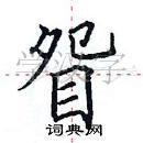 1. 掌握字形结构:先观察字的结构和笔画分布,确定好整体字形,掌握笔画的起止点和走势。对于“眢”,它是一个左右结构的字,左侧为“目”,右侧为“员”,需要根据结构合理安排笔画的位置和大小。