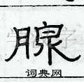 2. 笔画顺序:正确的笔画顺序是写好一个字的基础。“腺”字的笔画顺序是:横、竖、横折钩、横、横撇、竖钩、横撇弯钩。