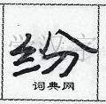 具体来说,“纷”字的写法是:先写左边的绞丝旁,再写右边的部分。左边绞丝旁的写法要注意三个提的走势和提的位置,以及最后一笔的顿笔。右边部分的写法要注意与左边绞丝旁的协调,以及各个笔画之间的连接和舒展。