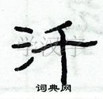 2. 结构:注意字的结构,保证字形的整体平衡。可以将“汘”字分成上下两部分,上半部分是横撇的组合,下半部分是竖画,要确保这两部分的相对位置合理。